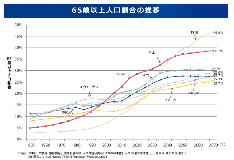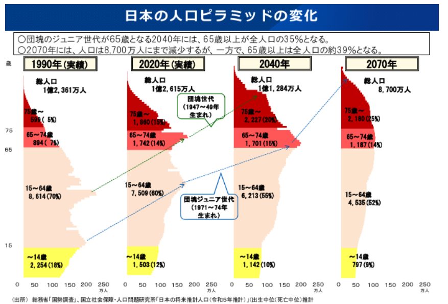 これは、世界に前例のない水準の高齢化社会に日本が突入することを意味しています。このような社会構造の変化は、経済活動にも大きな影響を及ぼすと考えられています。